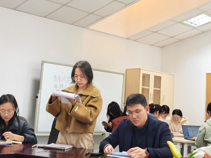 两位同志的入党介绍人分别就其预备期间的表现进行客观评价,袁鹏程、彭晓彬、李敏、何焕婷四位同志一致认为两人能够始终以党员标准规范言行,政治立场坚定、工作态度端正、群众基础良好,具备转正为正式党员的条件。骆永佳和周丹等与会党员结合日常观察与工作接触,充分发表意见,围绕两位同志的优点展开深入讨论,肯定了他们在理论学习、教学科研、服务奉献中的突出表现。