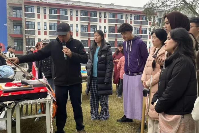 秦为海老师围绕京剧经典道具的文化内涵、制作工艺及舞台使用规范展开讲解,这些内容正是《京剧艺术赏析》省级特色课程的课堂重点。作为课程的实践拓展环节,秦老师的讲解让同学们将课堂理论与现场实物、展演结合,更直观感知国粹细节之美。讲解结束后,其弟子登台演绎程派京剧《锁麟囊》选段 —— 这也是课程 “剧目展演实践” 模块的成果之一,演员婉转的唱腔、典雅的身段,将剧中情感生动呈现,充分展现课程教学成效。