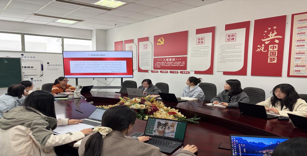 会上,胡月玲老师围绕教材第十七章《全面从严治党》作专题教学分享,紧扣全面从严治党是新时代党的建设鲜明主题、以党的政治建设为统领党的建设各项工作、反腐败斗争取得压倒性胜利并全面巩固、党的自我革命是跳出历史周期率的第二个答案四大核心要点,系统梳理教学逻辑、精准拆解重点难点,为后续课堂讲授夯实理论基础、明晰授课思路。